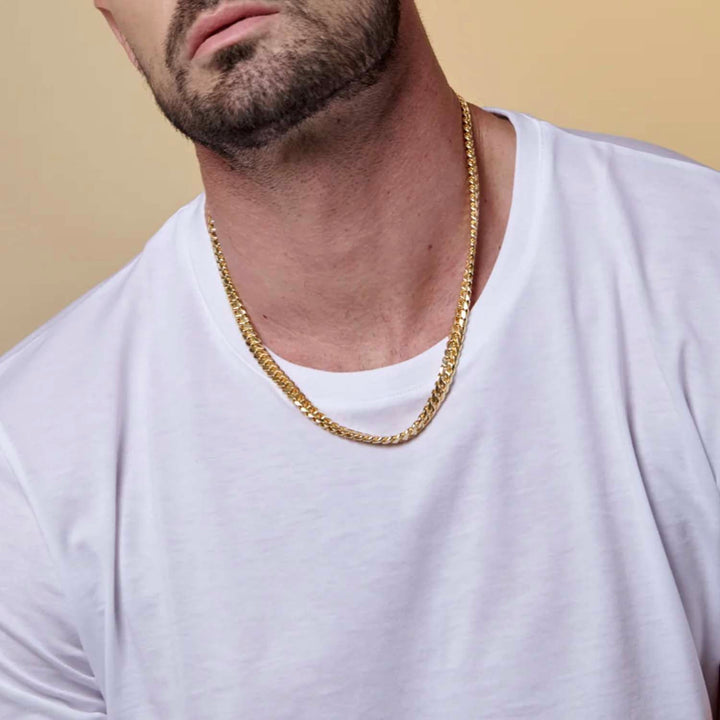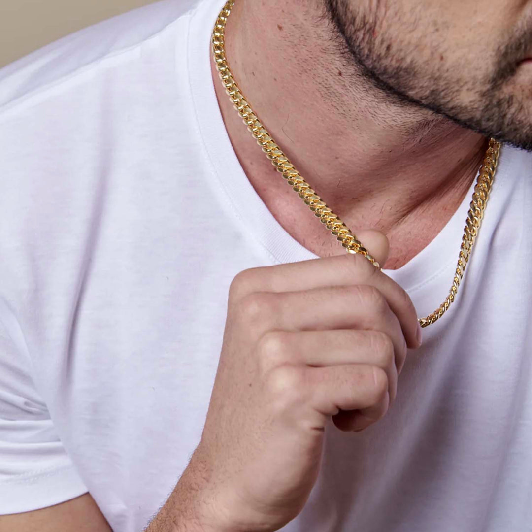Modelo con Cadena de oro cubana 8mm - GOLD SHIELD